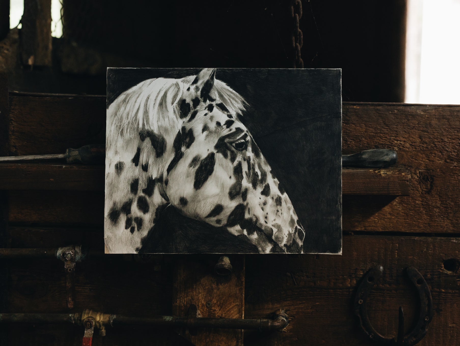 Toile 11 par 14 pouces sur papier déchiré et bois au fusain.