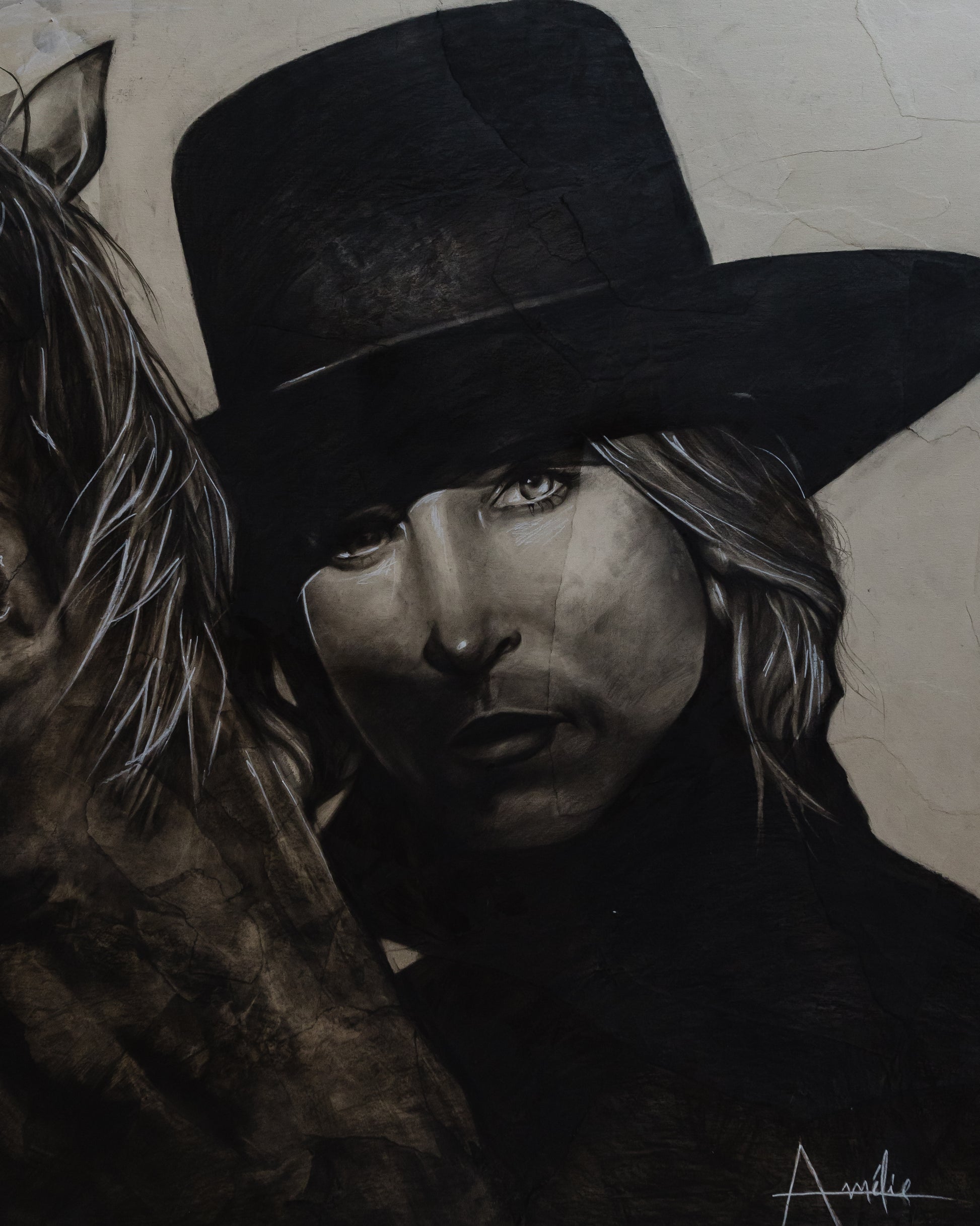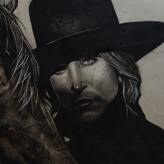 Toile 36 par 36 pouces sur papier déchiré et bois au fusain.