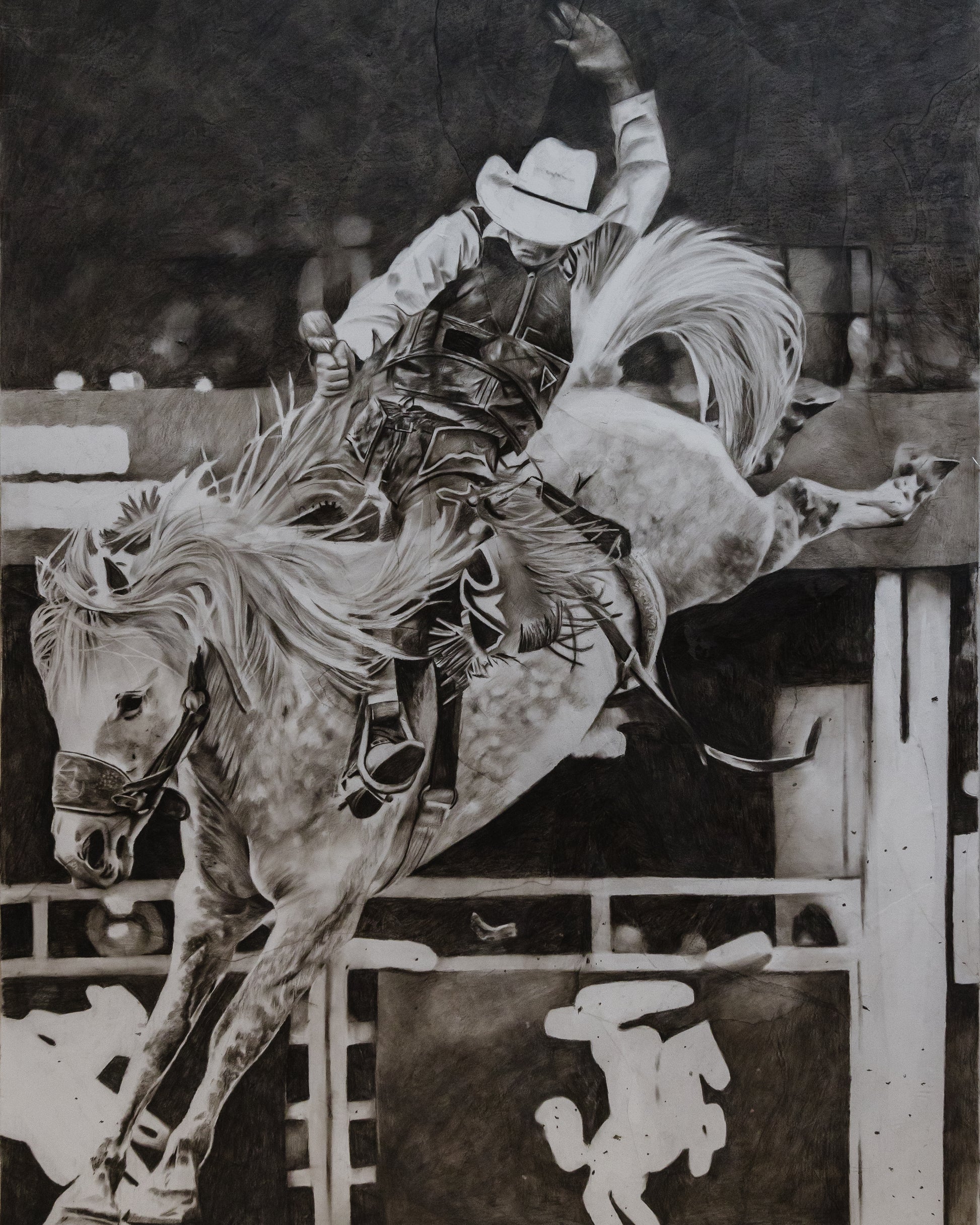 Toile 36 par 48 pouces sur papier déchiré et bois au fusain.